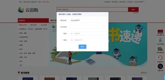 1、输入网址:https://www.sanxinbook.com/进入线上荐购平台——云田购,点击右上角“立即登录”。