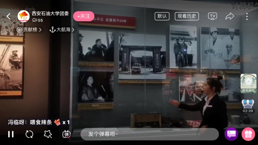 619日下午,由校团委、教务处联合组织的“相约西石大,‘云’上来相聚”-铁人王进喜纪念馆、校史馆云”讲解活动在抖音和bilibili平台直播。校内外500余名师生家长在线观看了讲解直播。
